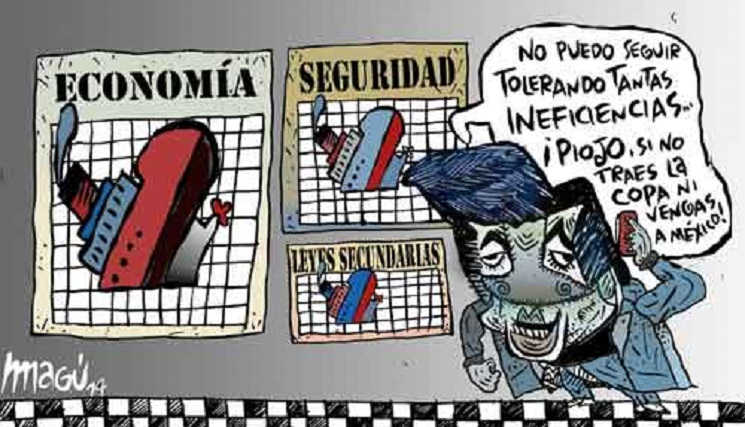 Marco A. Flota GRILLOTINA ¡Adiós, Cuate, adiós! Ya era tiempo: Cuauhtémoc se despidió con todos los honores. Con mayores habilidades, talento, popularidad, sobre todo, que muchos de lo que siguen en activo, pero decidió decir adiós. Según la mayoría de sus fans, según él mismo, todavía le quedaba mucho por dar, pero tomó la determinación de irse. Hablamos, claro, ya lo intuyó usted, del ingenioso Cuauhtémoc Blanco, no del ingeniero Cuauhtémoc Cárdenas, quien comparte con el legendario futbolista la mayoría de los atributos citados arriba: Inteligencia, habilidad, talento y popularidad que la mayoría de sus colegas en activo. Y no ha anunciado su retiro -el ingeniero- pero no debe tardar en hacerlo, ya que en la política es tiempo de pulgas, como en el futbol es tiempo de Piojos. No quiso el señor Herrera -“El Piojo”, pues- darle al Cuate la oportunidad de llevar a la Selección a un mejor sitio en el Mundial, mientras la Pulga… digo: El Grillo Zambrano sí al Cuatemochas tienta al hijo del Tata con la posibilidad de hacerse cargo del PRD, aunque ese partido tiene menos posibilidades de llegar a Los Pinos, que el TRI de aspirar a conseguir la Copa del Mundo en el Maracaná y contra Brasil. http://www.zocalo.com.mx/seccion/opinion-articulo/adios-cuate-adios-1401436979