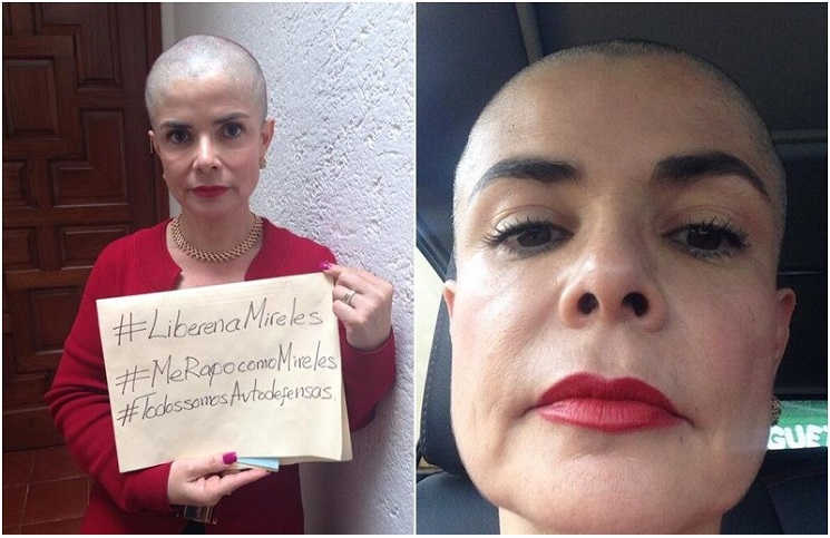 La defensora publicó fotos en su cuenta de Twitter, en las que se le ve sin cabellera y con mensajes en demanda de la libertad de Mireles, acusado de violar la ley federal de armas de fuego y delitos contra la salud.