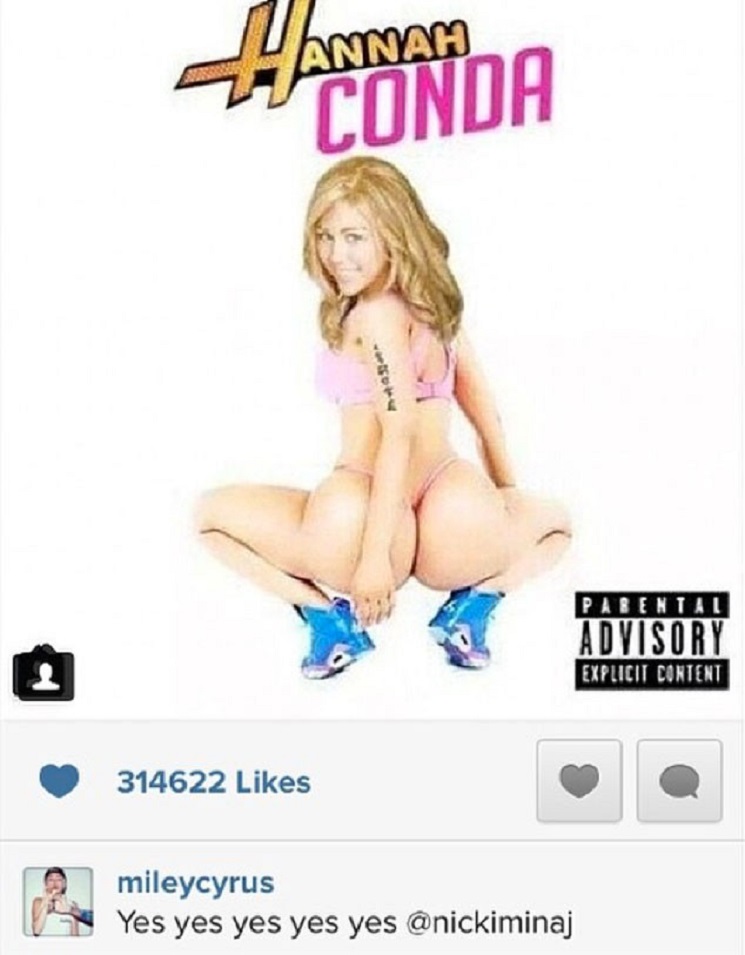 Por supuesto, eso no fue todo lo que la rapera tenía que decir, y, poco después posteó en Instagram otra foto de Miley con photoshop, escribiendo: “No Chill Zone!!!!”.