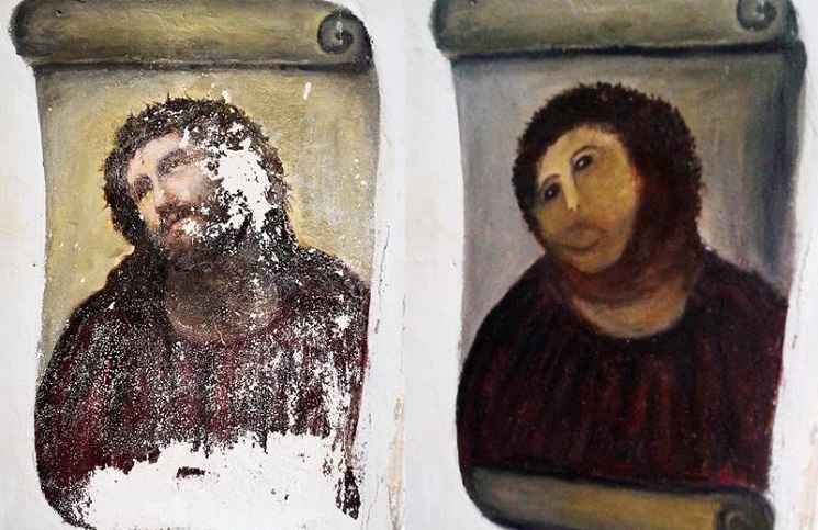 La noticia del intento de restauración no tardó en expandirse por las redes sociales y los medios de comunicación de todo el planeta se hicieron eco del hecho. Así, el Ecce Homo de Borja se convirtió en poco tiempo en un fenómeno viral en Internet, donde se propagaron como la espuma los chistes y los fotomontajes -los denominados memes- comparando al Ecce Homo con todo tipo de “celebrities” o con pinturas famosas como la Mona Lisa de Da Vinci.