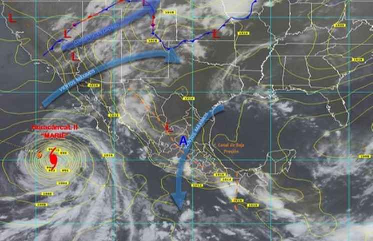 El huracán Marie se ha degradado a categoría II en la escala Saffir-Simpson, indicó el Servicio Meteorológico Nacional (SMN) , se localiza al suroeste de la Península de Baja California con desplazamiento hacia el noroeste y occidente del país.