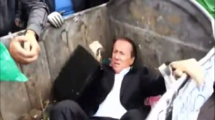 Decenas de manifestantes enfadados que estaban cerca del Parlamento ucranio metieron el martes a un prominente diputado de la oposición en un contenedor de basura, acusándolo de no respaldar leyes que acaben con las turbulencias en el país.