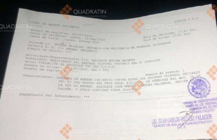 La defensa jurídica del ex vocero de las autodefensas, José Manuel Mireles y sus tres escoltas, interpuso la tarde de este jueves un juicio de amparo contra actos del segundo Tribunal Unitario del Onceavo Circuito que no ha resuelto en tiempo y forma la apelación del médico sobre su situación legal.
