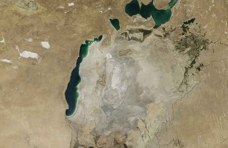“La pérdida de agua hizo inviernos más fríos y veranos más cálidos y secos. El daño alcanzó su punto máximo este año, cuando el lóbulo oriental del mar de Aral Sur ─que en realidad era el centro del lago original─ se secó completamente”, informa la Nasa.