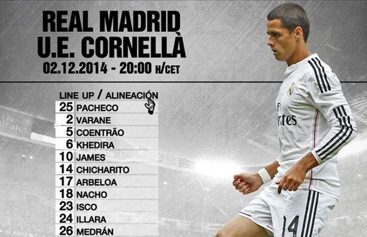 Javier ‘Chicharito’ Hernández tendrá minutos de juego con el Real Madrid en el partido de vuelta de los dieciseisavos de la Copa de Rey, donde el conjunto blanco recibe al Cornella, equipo de segunda división.