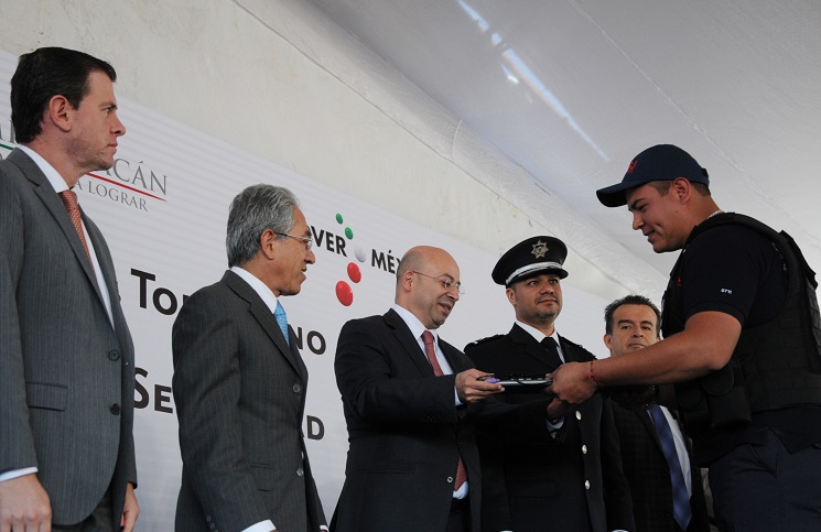 Además, en las instalaciones de dicho complejo, el mandatario estatal, acompañado por autoridades federales y estatales, entregó uniformes, equipo de seguridad y vehículos a las corporaciones policíacas de Michoacán.