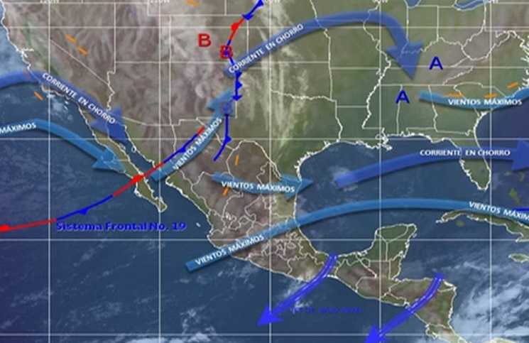 El organismo indicó que ese sistema se extenderá desde el centro de los Estados Unidos hasta los estados del noreste del territorio mexicano, donde mantendrá interacción con un canal de baja presión sobre el oriente del país.