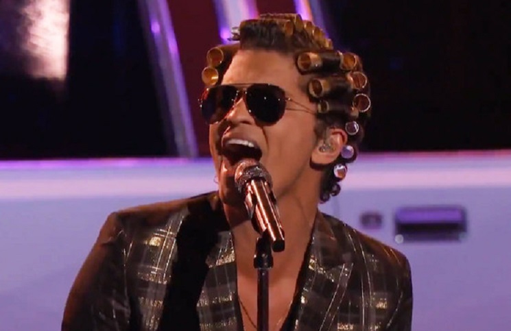 Preferimos pensar que los productores no le dieron tiempo suficiente a Bruno Mars para salir al escenario, a creer que fue intencional el look que usó en cantante en su más reciente participación en The Voice.