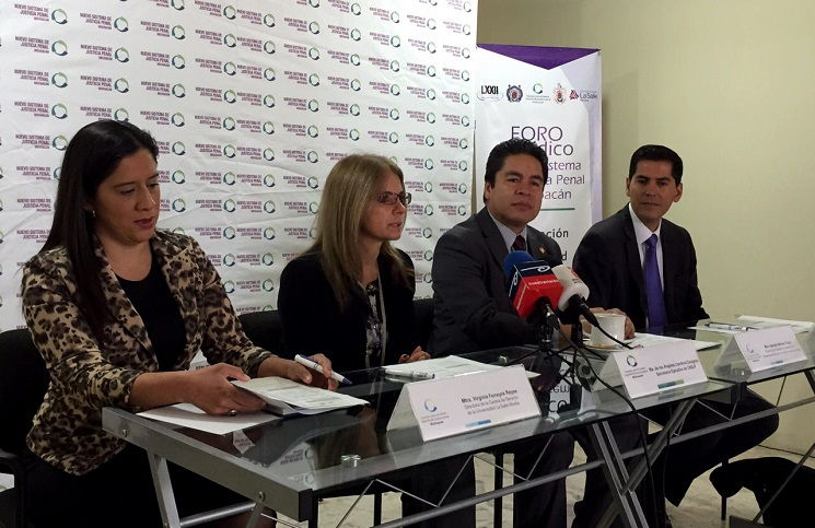 A través de una rueda de prensa autoridades del Consejo para el Nuevo Sistema de Justicia Penal y diferentes instituciones: H. Congreso del Estado de Michoacán, Universidad Michoacana de San Nicolás de Hidalgo y la Universidad La Salle, Campus Morelia informaron a los medios que el Foro Jurídico tiene como objetivo difundir entre la comunidad estudiantil el sistema acusatorio, adversarial y oral.