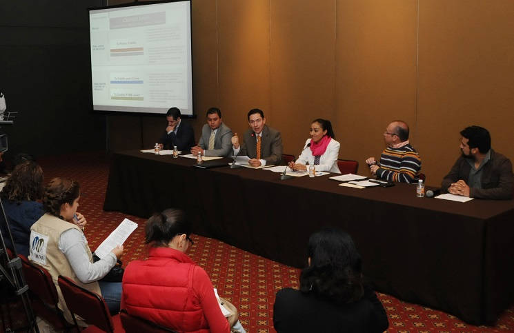 En rueda de prensa, Rodrigo Maldonado López, titular de SEJOVEN; Diana Hernández Lomelí, delegada de la Secretaría de Economía en Michoacán; y Mario Espino Arenas, director de NAFIN en la entidad, detallaron los pormenores para participar en los programas financieros recientemente puestos en marcha por el presidente de México.