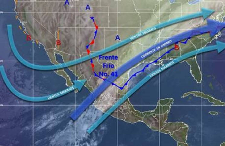 Indicó que debido a que la masa de aire frío que impulsa al sistema frontal número 41, que se encuentra sobre el Golfo de México, oriente y norte del país, se asociará con la entrada de humedad del océano Pacífico, generará potencial de precipitaciones con tormentas eléctricas.