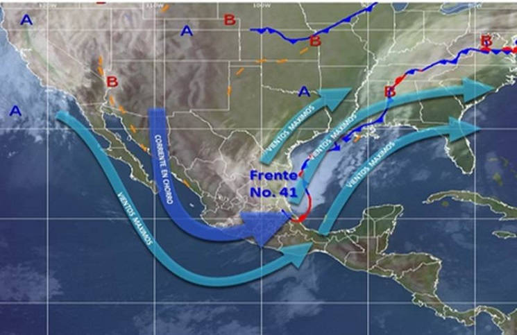 El Servicio Meteorológico Nacional (SMN) explicó que el frente frío 41 se extenderá desde el norte del Golfo de México hasta la Sonda de Campeche, y continuará su interacción con los fenómenos climatológicos mencionados.