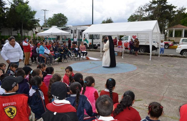 Durante el evento se presentó la obra de teatro “Sor Juana Inés de la Cruz” a mujeres y niños quienes se dieron cita en la plaza principal.