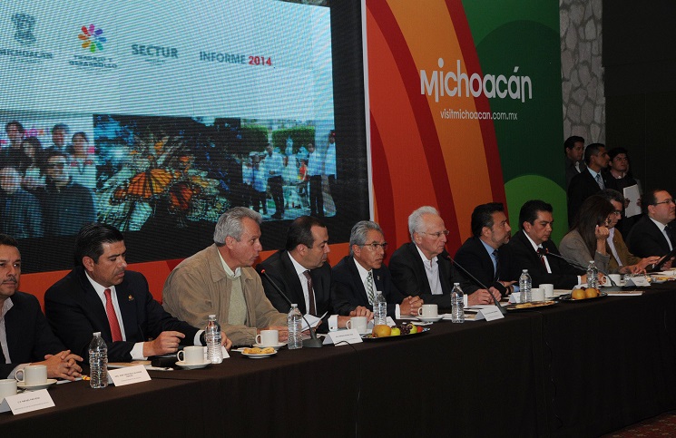 En representación de la secretaria de Turismo, Claudia Ruiz Massieu Salinas, el subsecretario de Calidad y Regulación de la Sectur, Francisco Maass Peña, refirió que como parte del Plan Michoacán se invirtieron 122 millones de pesos el año pasado para implementar una estrategia en cinco ejes; el primer eje fue una estrategia de promoción nacional e internacional implementada por el Consejo de Promoción Turística; el segundo, apoyo a proyectos de infraestructura turística mediante el Programa para el Desarrollo Regional Turístico Sustentable; el tercero, fortalecer el turismo alternativo en zonas indígenas, por lo que se consolidaron 12 proyectos ecoturísticos en 9 municipios; cuarto, fortalecimiento de seguridad turística mediante cursos de capacitación a prestadores de servicios, funcionarios de gobierno, sector privado y social; en el quinto, elaboración de estudios para desarrollar nuevos productos turísticos en la entidad.