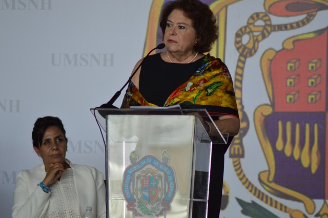 La abanderada, quien es universitaria, trabajadora, académica e investigadora formada en las aulas y en las luchas, durante su participación en el Foro de Educación, Investigación y Vinculación Gobierno-Sociedad-Universidad, organizado por la máxima casa de estudios en el estado, dijo que la UMSNH sufre el calvario de la corrupción, de la impunidad, del deterioro de sus funciones