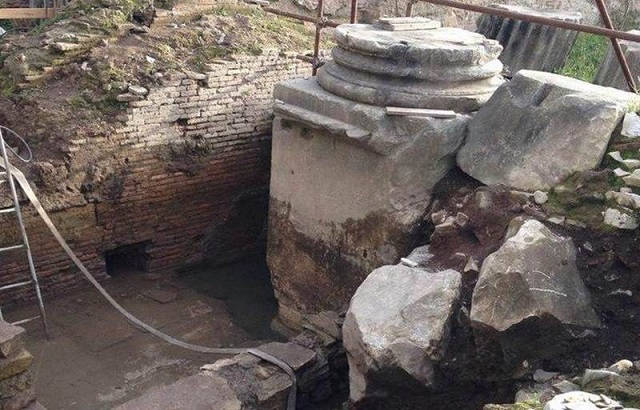 Las investigaciones, aún en curso, han sido “muy complicadas” porque las excavaciones han tenido lugar bajo el acuífero que recorre el área y, además, se ha descubierto el pavimento antiguo en placas de travertino, el plinto frontal y la base de la cuarta columna.