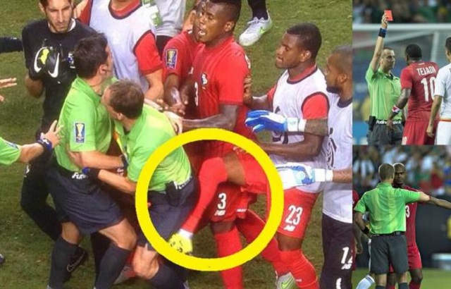 El defensa de Panamá, Ángel Patrick, golpeó con una patada al silbante estadounidense Mark Geiger.