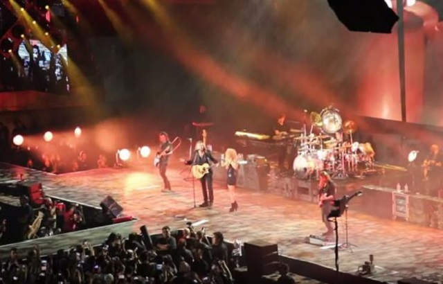 La cantante Shakira y el grupo Maná compartieron escenario en un concierto en Barcelona.