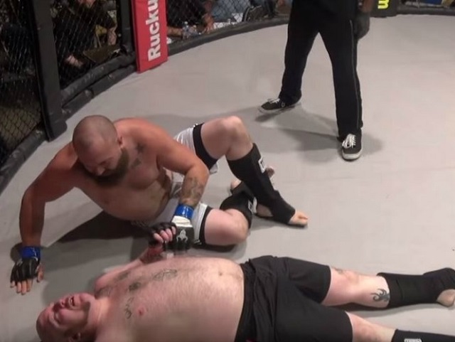 na pelea de Artes Marciales Mixtas fue interrumpida súbitamente porque Travis Wolford, uno de sus participantes, defecó sobre el ring ante la sorprendida mirada de los asistentes del evento.
