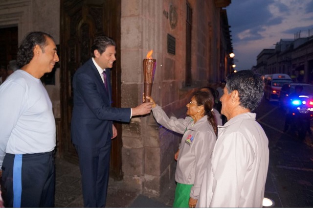 El Ayuntamiento de Morelia recibió la Antorcha Conmemorativa del Bicentenario Luctuoso de Don José María Morelos y Pavón en Palacio Municipal, la cual fue entregada al Presidente Municipal, Alfonso Martínez Alcázar y al regidor, Félix Madrigal, fuego, el cual dijo el Alcalde, simboliza la promoción de la paz, los principios y el legado del Generalísimo.