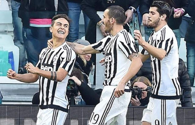El argentino Paulo Dybala, Leonardo Bonucci y Simone Zaza anotaron por el campeón del fútbol italiano, que empató provisionalmente en el segundo lugar con el Inter. El club de Milán jugaba más tarde contra Empoli.