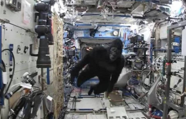 En el video se puede observar cómo va en busca del astronauta británico y lo persigue por la estación.