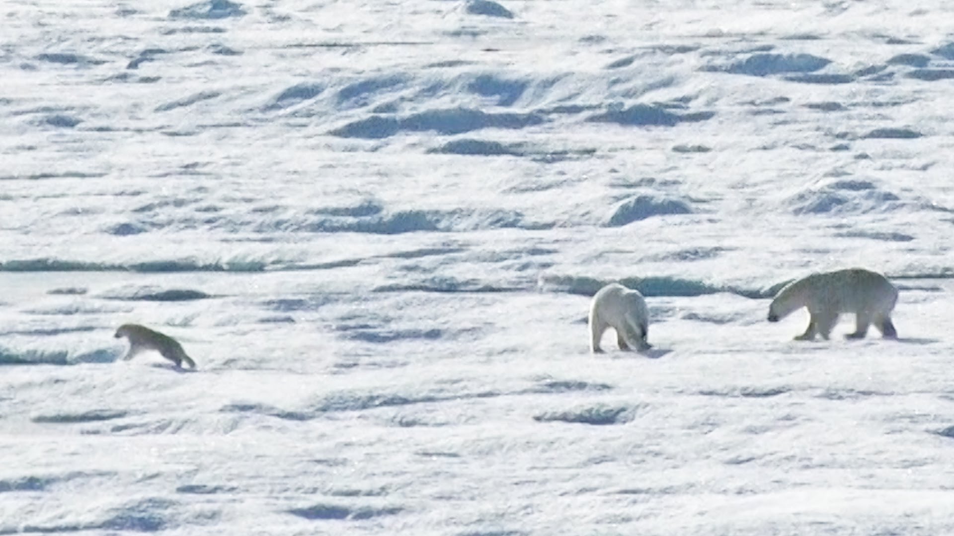En el video se puede observar como un macho adulto persigue a una madre y a su cría a lo largo del hielo ártico. Pese a los intentos de la hembra de proteger al pequeño oso polar, el macho lograr atrapar a la cría y alimentarse de esta.