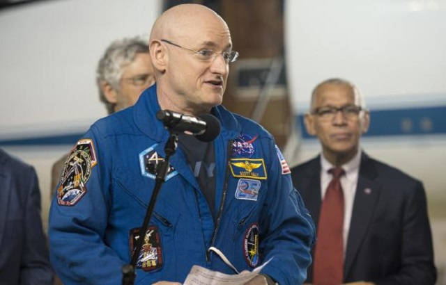 En el aeropuerto lo esperaban sus hijas, su pareja y su hermano gemelo y también astronauta, Mark, además del director de la NASA, Charles Bolden, entre otros.