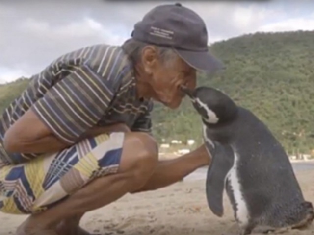 Joao Pereira de Souza encontró, en una isla cercana a la costa de Río de Janeiro, lleno de petróleo y muriendo de hambre, a un pingüino de Magallanes, que el jubilado hoy con 71 años, llamó Dindim.