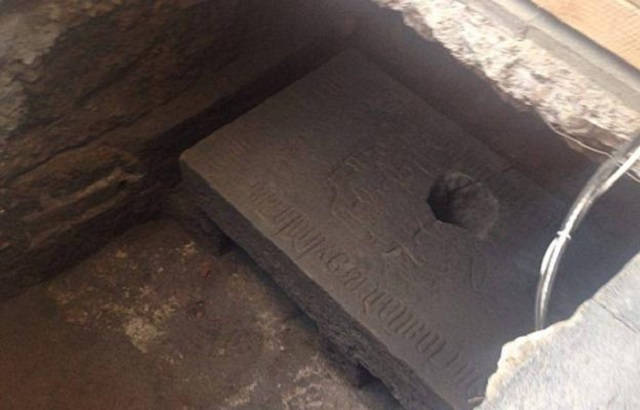 La lápida, de 1.87 metros de largo, 90 centímetros de ancho y un espesor de 30 centímetros, fue hallada mientras trabajadores contratados por el Fideicomiso del Centro Histórico laboraban en la acera de la puerta central de la Catedral Metropolitana para la colocación de luminarias.
