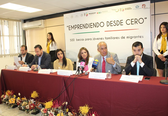 En el marco de la estrategia de vinculación con los michoacanos en el exterior y sus familias en México, las secretaría de Economía (SE) a través del Instituto Nacional del Emprendedor (Inadem), la Secretaría de Relaciones Exteriores (SER), a través del Instituto de los Mexicanos en el Exterior (IME), y la Secretaría del Migrante (Semigrante), abrieron la convocatoria del programa Emprendiendo desde Cero, que ofrecerá 500 becas para jóvenes familiares de migrantes en Michoacán.
