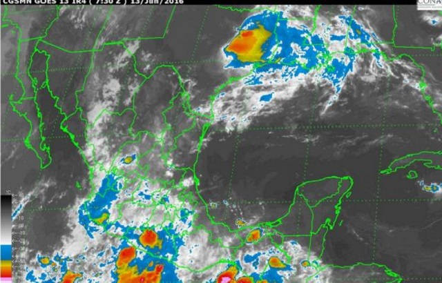 Cielo medio nublado, se prevé en el Pacífico Sur, 80 por ciento de probabilidad de lluvias puntuales intensas en Chiapas, Oaxaca y Guerrero, con actividad eléctrica.