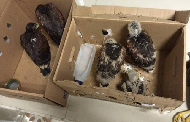 La Profepa, en coordinación con la Policía Federal, aseguró y puso a disposición del Ministerio Público Federal a dos personas en posesión ilegal de nueve polluelos de Aguililla de Harris (Parabuteo unicinctus), mismos que eran transportaban ocultos en el interior de un vehículo .