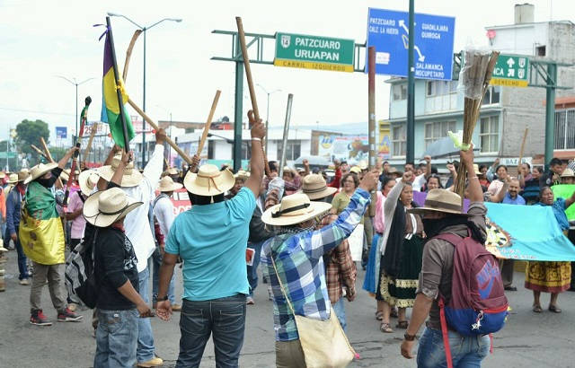 Habitantes de Cherán arribaron a la capital michoacana, donde participan en la marcha en apoyo a la Coordinadora Nacional de Trabajadores de la Educación (CNTE), la cual ha congregado a varias comunidades indígenas.