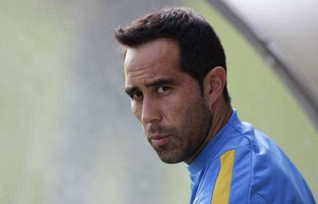El arquero chileno del Barcelona Claudio Bravo llegó a Inglaterra el martes para finalizar su transferencia al Manchester City de la liga Premier.