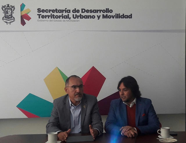 Los titulares de las Secretarías de Desarrollo Territorial, Urbano y Movilidad (Sedetum) y de Comunicaciones y Obras Públicas (SCOP), Sergio Adem Argueta y José Juan Domínguez López, respectivamente, se reunieron con personal de la Secretaría de Desarrollo Agrario, Territorial y Urbano (Sedatu) y de la Coordinación General de Gabinete y Planeación (CGAP) con el objetivo de revisar de manera conjunta proyectos a desarrollar en las diversas regiones de Michoacán.