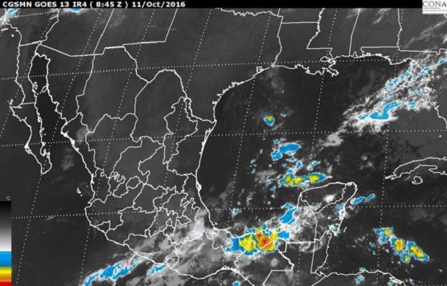 También ocasionará tormentas fuertes en zonas de Chiapas y Tabasco; lluvias con chubascos en sitios del Estado de México, la Ciudad de México y Puebla, y lluvias escasas en Nuevo León, Tamaulipas, San Luis Potosí, Hidalgo, Tlaxcala y Morelos.