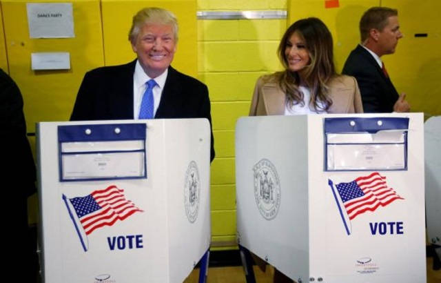 Melania Trump, esposa del magnate, lo acompañó a votar en la casilla.