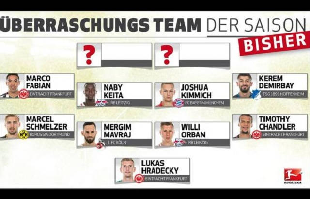 Así como los defensas Marcel Schmelzer (Borussia Dortmund), Mergim Mavraj (Colonia), Willi Orban (Leipzig), Timothy Chandler (Eintracht Frankfurt) y el portero Lucas Hradecky (Eintracht Frankfurt). Los últimos dos futbolistas compañeros de equipo del mexicano.