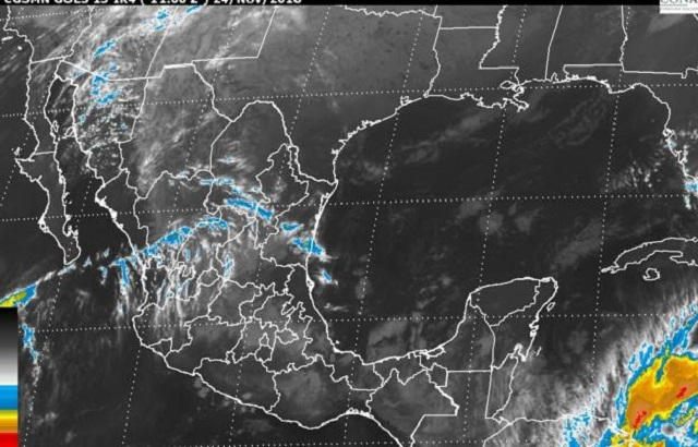 En el Pacífico Sur se espera cielo nublado, 80 por ciento de probabilidad de tormentas puntuales fuertes en Oaxaca y Chiapas, así como lluvias escasas en Guerrero.