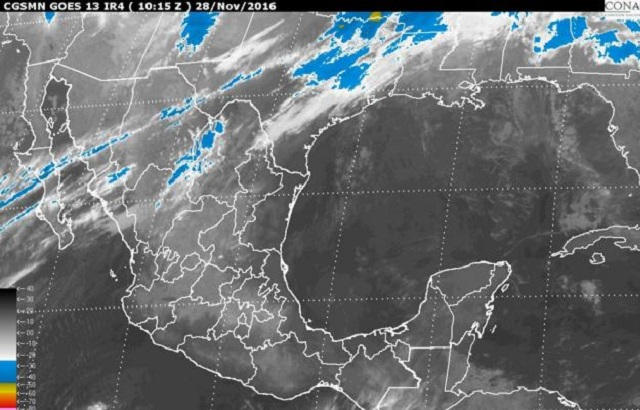 En el Pacífico Norte se espera cielo parcialmente nublado, temperaturas frías por la mañana y noche con viento del noroeste de 10 a 20 kilómetros por hora, y rachas superiores a 60 kilómetros por hora en Sonora. Así como posible caída de nieve o aguanieve en las sierras de la entidad.