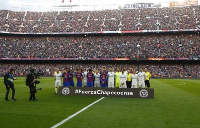 Merengues y blaugranas se unieron en el mismo sentimiento de luto. Previo al Clásico Español, jugadores y tribuna del Camp Nou recordaron a las víctimas del ‘avionazo’ que sufrió el club brasileño Chapecoense el pasado lunes, en Medellín, en su viaje a Colombia para disputar la final de la Copa Sudamericana.