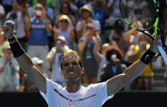 El campeón de 14 Grand Slam celebró así la primera victoria con Carlos Moyá en su palco. El ex tenista se incorporó en diciembre al equipo técnico del español y hoy vivió su debut en el box junto a Toni Nadal, el entrenador de toda la vida de Nadal.