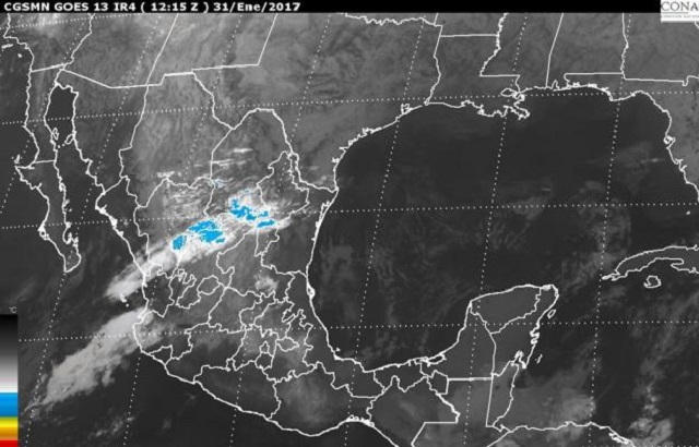 Se prevén valores de -5 a 0 grados Celsius en sierras de Baja California, Sonora, Coahuila, San Luis Potosí, Zacatecas, Aguascalientes, Jalisco, Michoacán, Guanajuato, Querétaro, Hidalgo, Puebla, Tlaxcala y Estado de México.