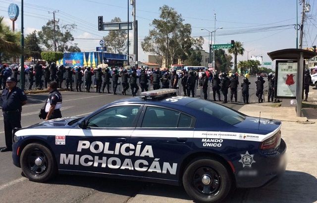 Con el despliegue de elementos de la Policía Michoacán, la Secretaría de Seguridad Pública del (SSP) monitorea las acciones de protesta que integrantes de la Sección 18 de la Coordinadora Nacional de Trabajadores de la Educación (CNTE) realizan en la capital michoacana.