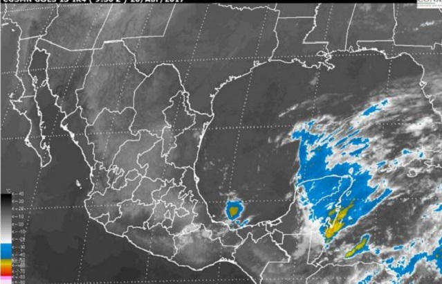 La baja presión en niveles medios y altos de la atmósfera que se desplazará hacia la Península de Yucatán, también ocasionará lluvias con intervalos de chubascos en Puebla y Yucatán.