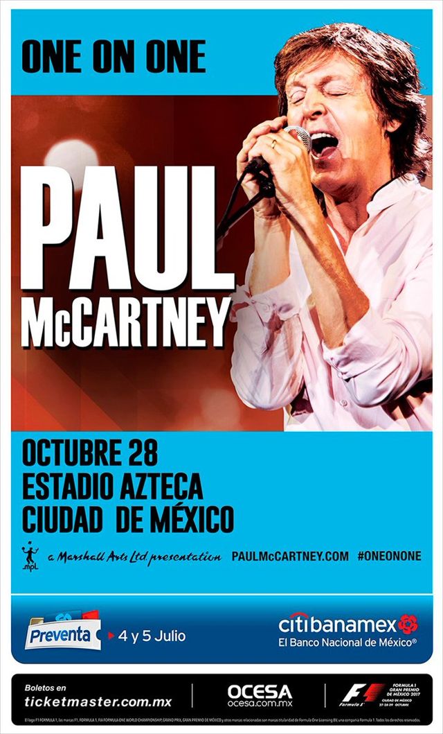 En su última visita a México, McCartney ofreció un concierto histórico en el Zócalo de la Ciudad en el que convocó a 250 mil fans. Desde su primera visita en 1993, Paul ha tocado 10 veces en México.