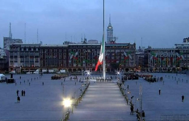En punto de las 7:19 horas el Presidente Enrique Peña Nieto izó a media asta la Bandera Nacional en el Zócalo de la Ciudad de México en memoria de las víctimas de los terremotos de 1985.