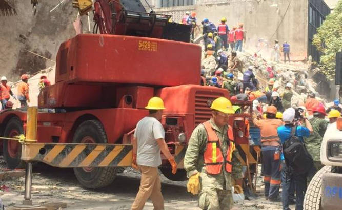 La noche de ayer se hablaba de que bajo este edificio había cerca de 20 personas atrapadas; sin embargo, los datos no han logrado precisar cuántos cuerpos quedan aún bajo los escombros.