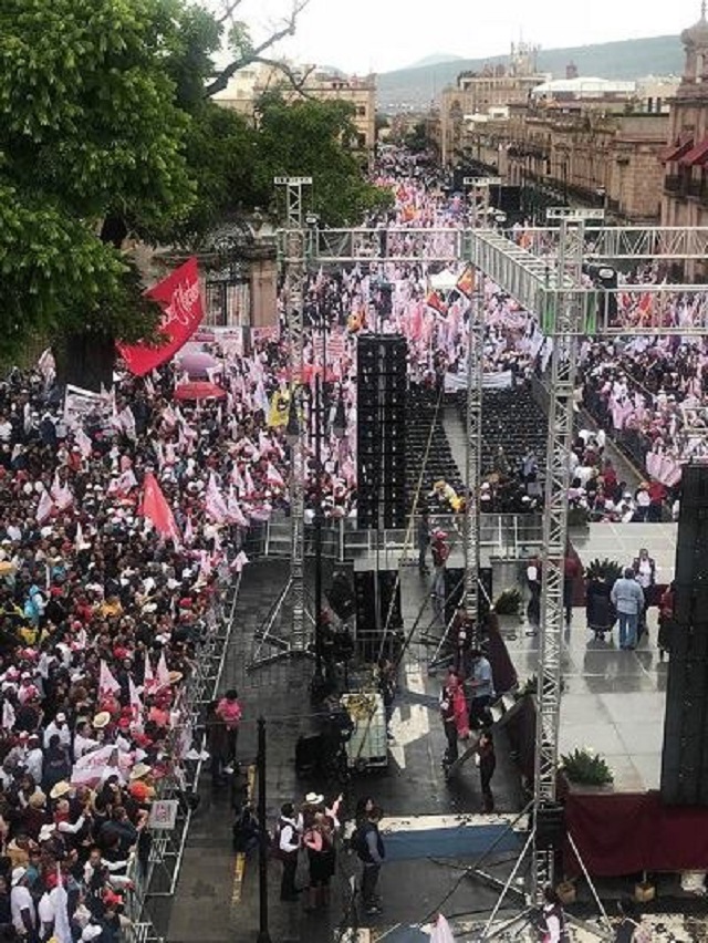 Entre los organizadores de dicho evento, se habló de una concentración de al derredor de 20 mil militantes priistas, en la considerada como la plaza más grande del centro histórico de Morelia, con una superficie de 2 hectáreas aproximadamente, es decir 20 mil metros cuadrados, de los que, al quitar las jardineras, la zona del monumento ecuestre de Morelos y el equipamiento urbano, se pueden disponer de 8 mil metros cuadrados.